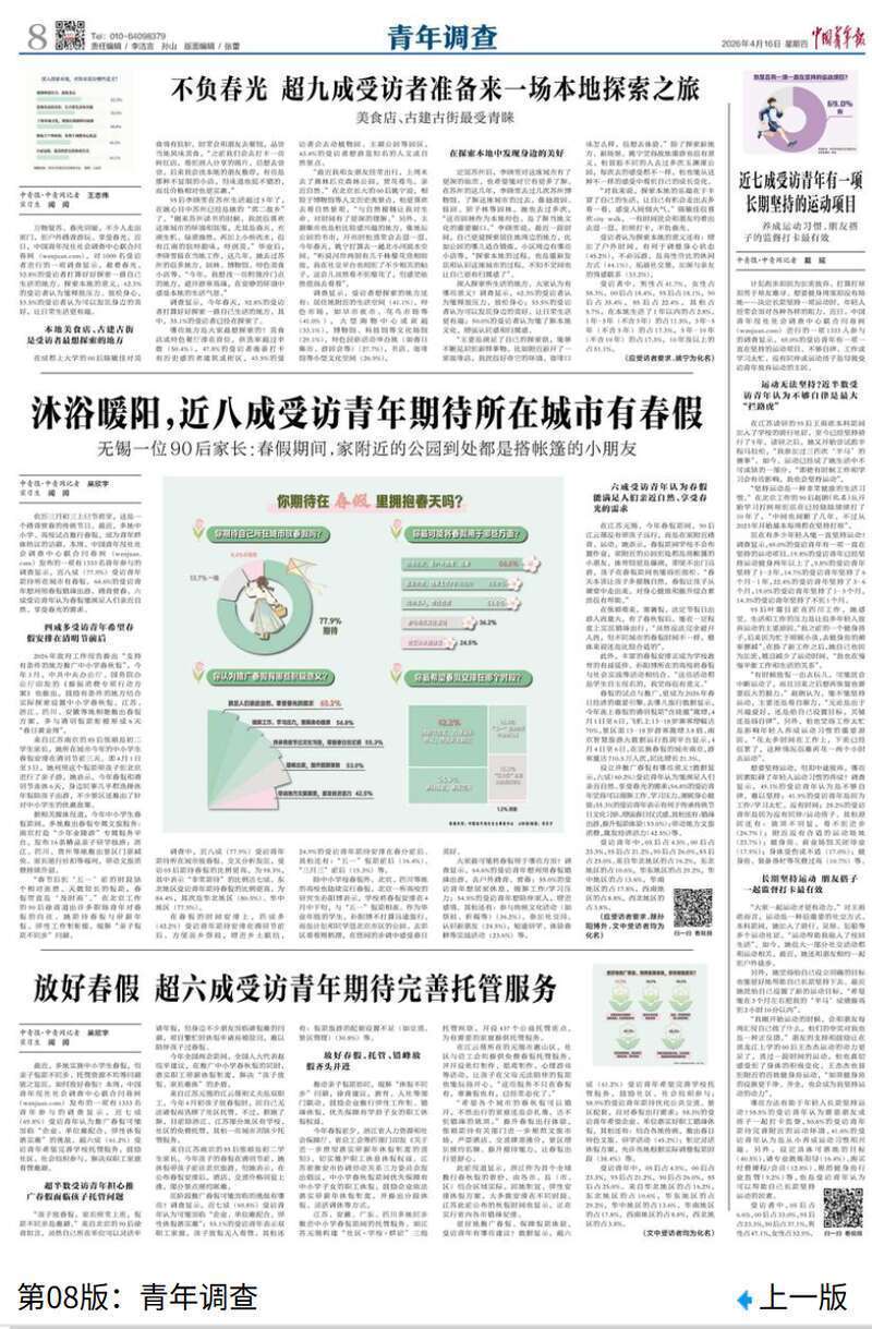 近八成受访青年期待所在城市有春假