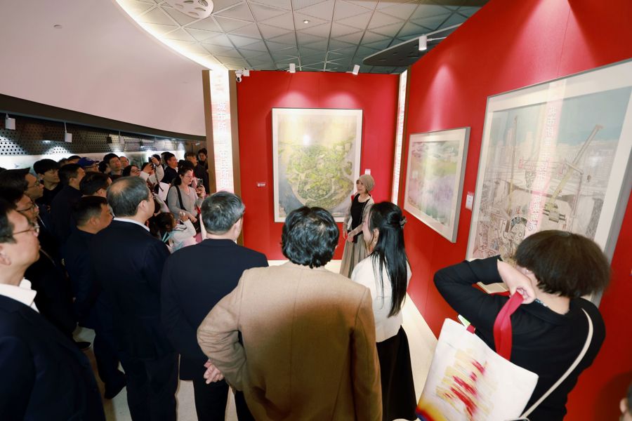 艺术家们用画笔捕捉城市更新中的开合,向世界展示城市更新中的焕新出彩。长30米的国画长卷《北横贯龙图》首次亮相便成为展览焦点,此卷集合丁申阳、乐震文、徐立铨等17位海派名家,酣畅开合的笔墨荟萃于“上海之巅”,全景展示这项贯穿上海东西的动脉工程的宏伟全貌。