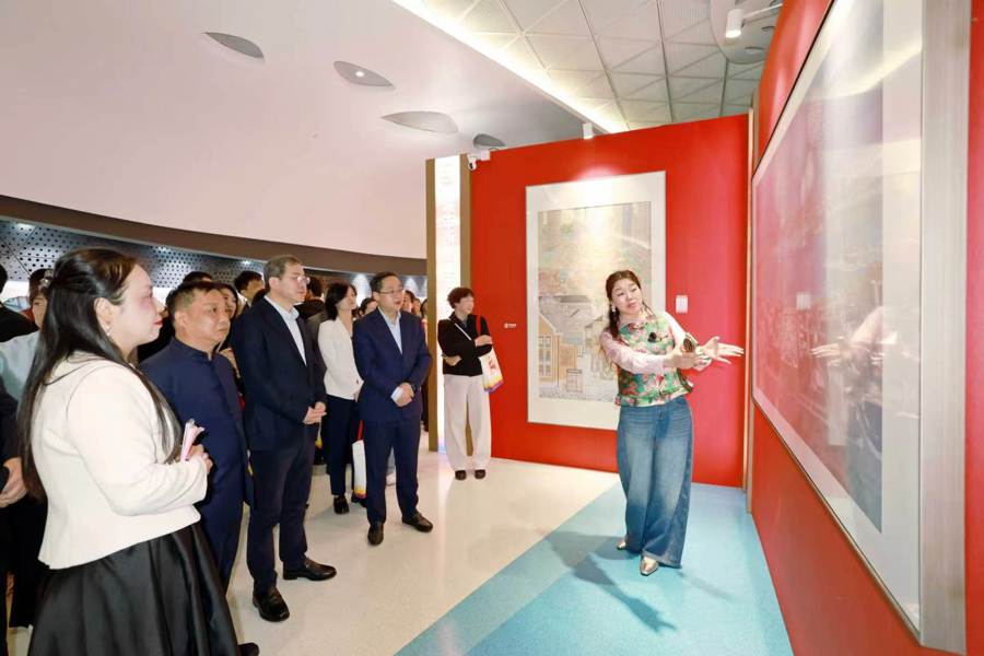 建筑可阅读、街区可漫步、公园宜休憩、人文有温度、东西南北可贯通……昨天,新落成的上海中心大厦艺术长廊迎来了汇聚近百幅国画新作的主题展览“美丽上海·美好生活——上海城市题材中国画作品展”。